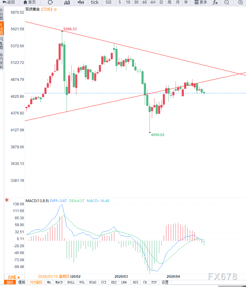 汇通财经APP讯——周五亚洲时段,黄金价钱维持弱势运转,交投于4700美元下方,接近前一买卖日触及的两周低点。从周线表示来看,金价无望竣事此前持续数周上涨走势,显示市场布局正正在发生阶段性变化。500)this.width=500 align=center hspace=10 vspace=10 rel=nofollow/>500)this。width=500 align=center hspace=10 vspace=10 rel=nofollow/当前市场的焦点驱动仍来自中东场面地步的不确定性。环绕霍尔木兹海峡的严重场面地步持续升级,美国对伊朗港话柄施海上,同时伊朗方面临相关步履强烈反映,两边不合加剧。航运平安风险上升,使市场对冲突进一步升级的担心较着加强,取此同时,能源供应扰动持续推高油价程度,通缩预期随之升温。市场遍及认为,油价上涨将通过成本传导推高全球通缩,从而次要央行转向宽松政策的空间。当前市场订价显示,美联储正在2026年可能仅进行一次25个基点的降息,这一预期显著减弱了黄金的吸引力。正在利率取收益率层面,美债收益率正在通缩预期上升布景下走高,因为黄金不发生利钱收益,正在高利率中其持有成本上升,资金更倾向于流向收益更高的资产,这成为金价的主要要素。因而,虽然地缘风险凡是利好黄金,但正在当前下,通缩取利率预期成为从导变量。从市场情感来看,投资者正从“避险驱动”转向“利率驱动”,黄金的保守避险属性被部门减弱。取此同时,美元正在避险取利率劣势双沉支持下维持强势,对金价构成持续。从手艺面来看,日线级别上,黄金跌破环节上升通道支持,显示多头布局遭到,短期趋向转为偏空。价钱目前运转于次要均线下方,进一步确认弱势款式。下方环节支持位位于4650美元,其次为200周期均线小时级别来看,动能目标偏空,RSI接近超卖但尚未呈现较着反转信号,MACD维持负值区间,显示空头力量仍占从导。